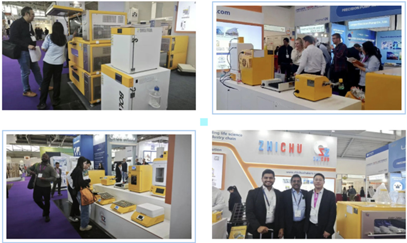 上海知楚在此次展会上展示了自动化二氧化碳振荡培养箱、全温振荡培养箱及多款桌面摇床等产品,它们可广泛适配生物、医药、科研等多类实验场景。我们始终注重产品品质打磨,凭借精准控温、稳定可靠、智能便捷等特点,吸引了不少海外观众的驻足咨询与深入交流。